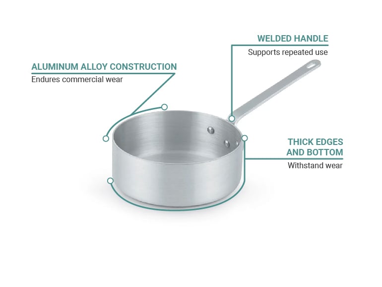 Chảo nấu sốt Vollrath 4018 Wear-Ever® có độ sâu 5.4 cm để giảm bắn tung tóe khi thức ăn đang sôi liu riu. Đường kính 20.3 cm, dung tích 2.4 lít, viền trên và đáy dày gấp đôi để chịu được hao mòn thông thường. Làm từ hợp kim nhôm 3004, chịu được sử dụng khối lượng lớn, và có tay cầm nhôm hàn liền dễ vệ sinh.